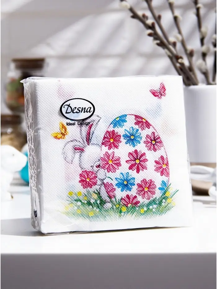 Пасхальные сервировочные бумажные салфетки Desna Design с рисунком «Пасхальный подарок» - это отличное украшение для вашего праздничного стола. Идеально подойдут как для сервировки, так и в качестве декора и украшения в домашних условиях или на больших мероприятиях. Праздничные салфетки с пасхальным рисунком будут хорошим подарком для родных и близких. Данные салфетки можно использовать так же для декупажа и коллажей.