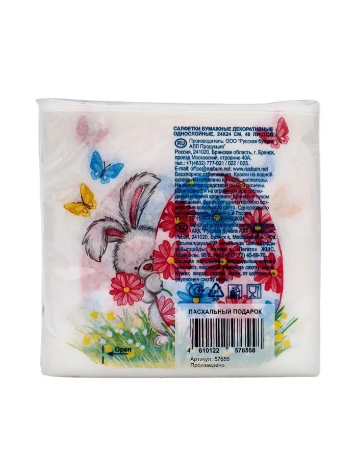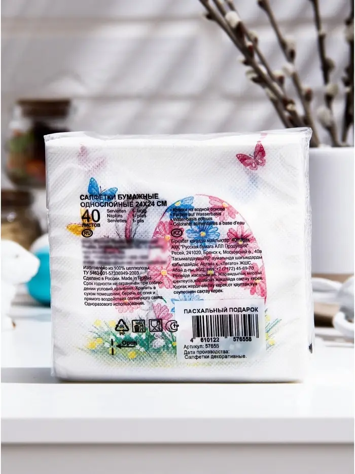 Салфетки бумажные «Пасхальный подарок», 1 слой, 24×24 см, 40 шт