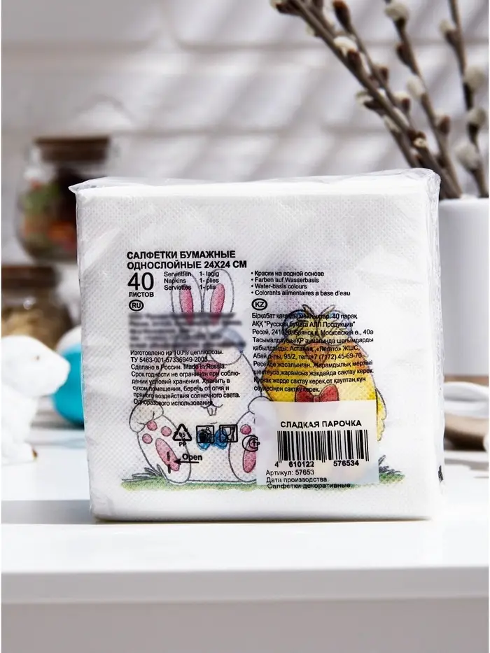 Салфетки пасхальные бумажные «Сладкая парочка», 1 слой, 24х24 см, 40 шт