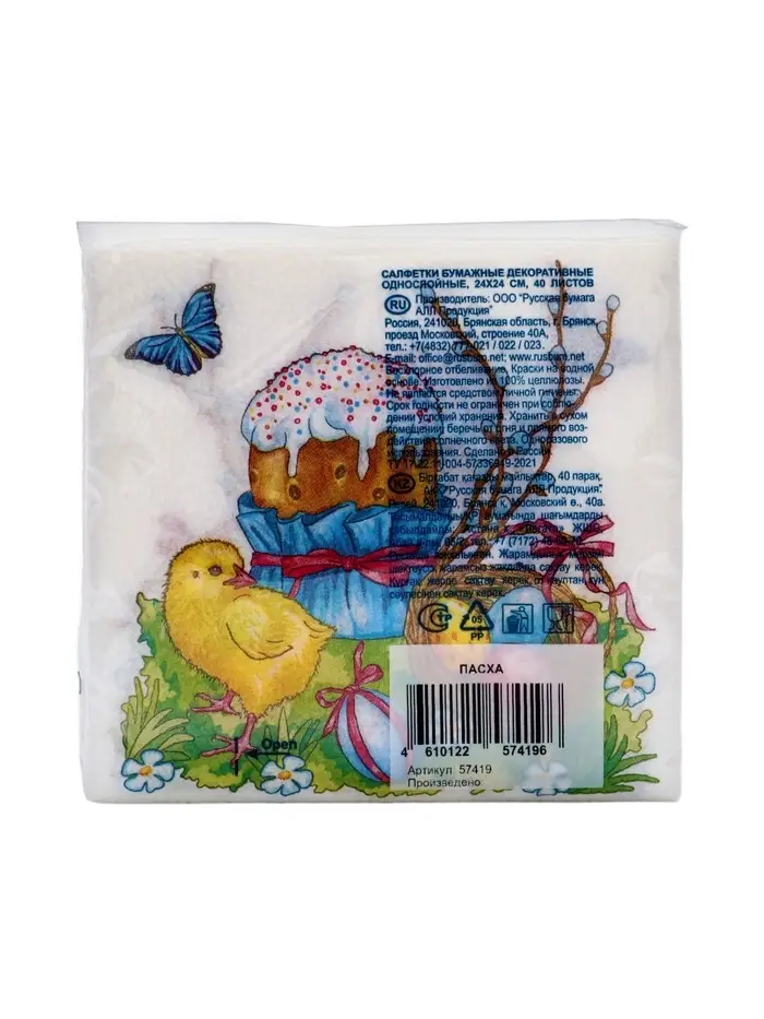 Салфетки бумажные «Пасха», 1 слой, 24×24 см, 40 шт