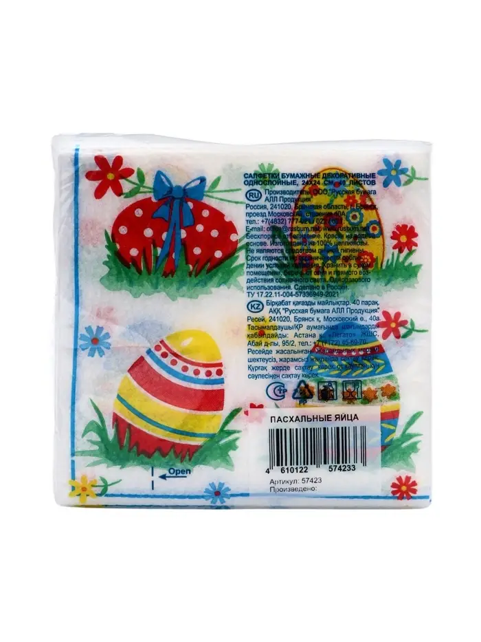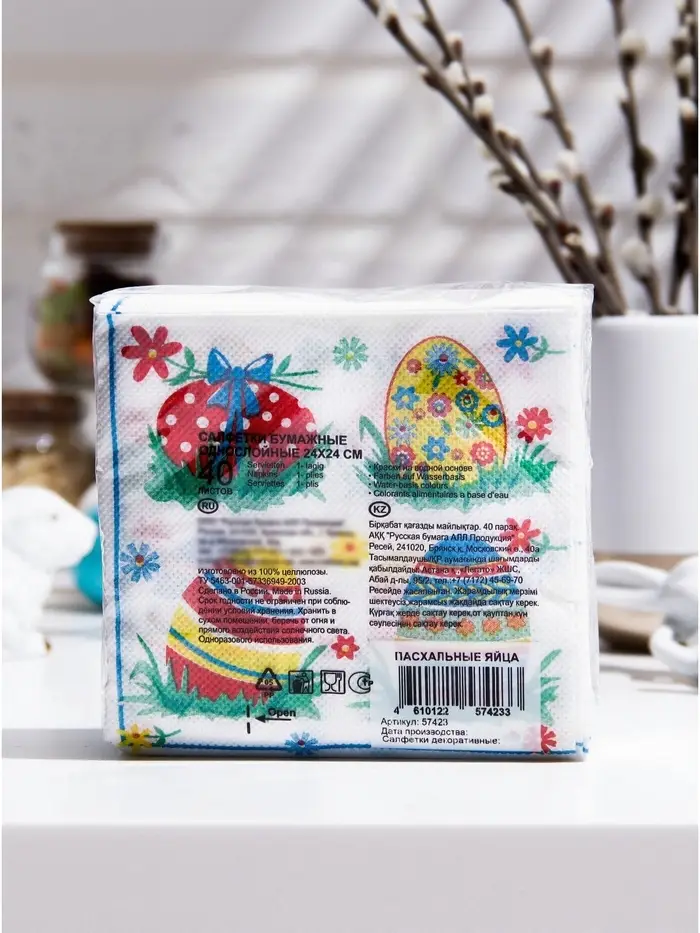Салфетки бумажные «Пасхальные яйца», 1 слой, 24х24 см, 40 шт