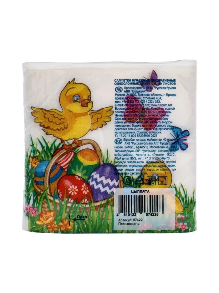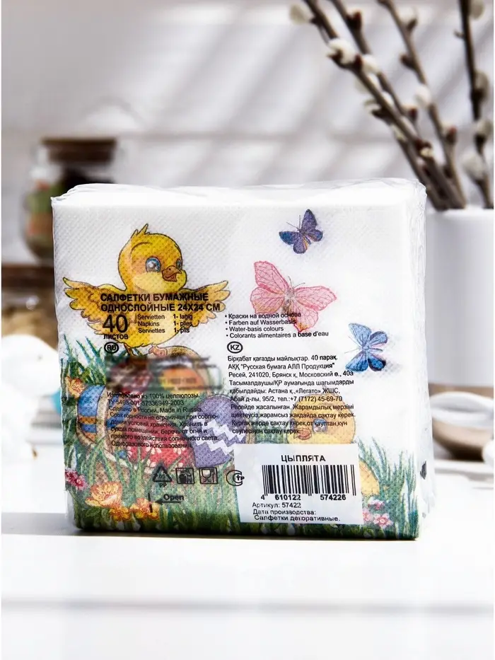 Салфетки пасхальные бумажные «Цыплята», 1 слой, 24х24 см, 40 шт