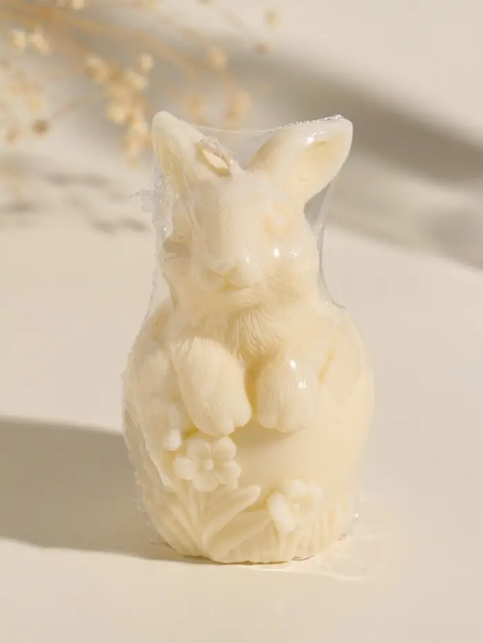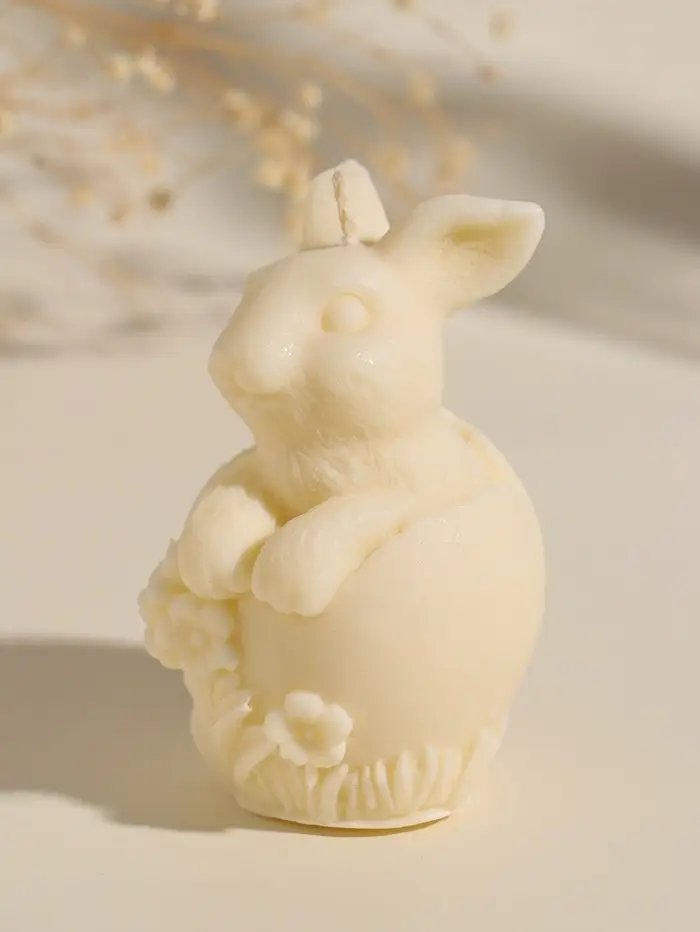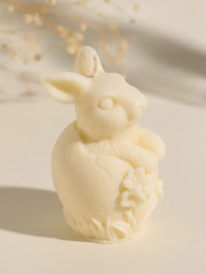 Свеча пасхальная "Заяц с цветами" 6х10 см, бежевый