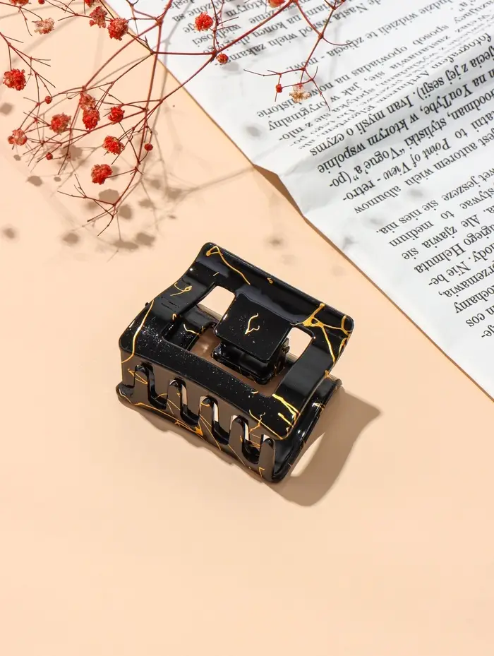 - Стильное цветовое решение: Сочетание глубокого черного и золотистого оттенка добавляет образу лаконичный шик. Такой крабик гармонично смотрится с деловой одеждой, вечерним нарядом или повседневным, не нарушая общей эстетики.