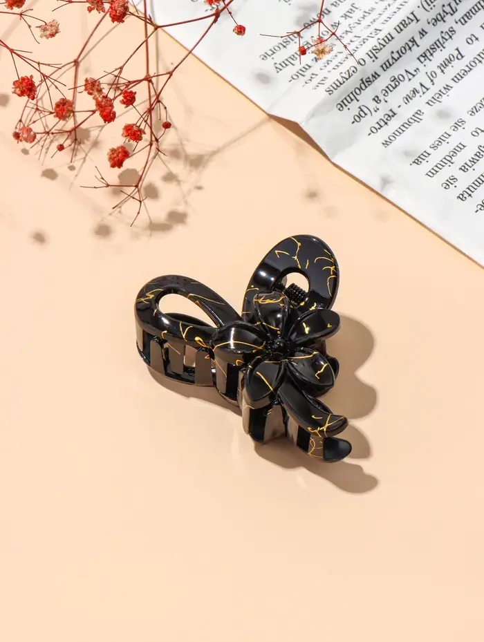 Краб для волос "Классик" цветок петельки, 7х4,5 см, чёрно-золотой