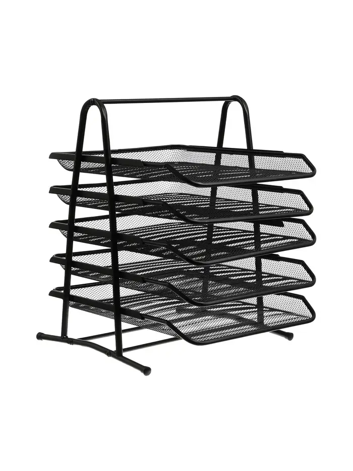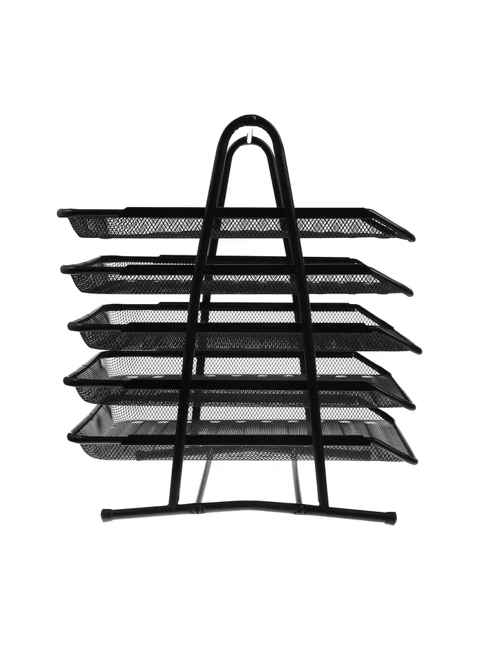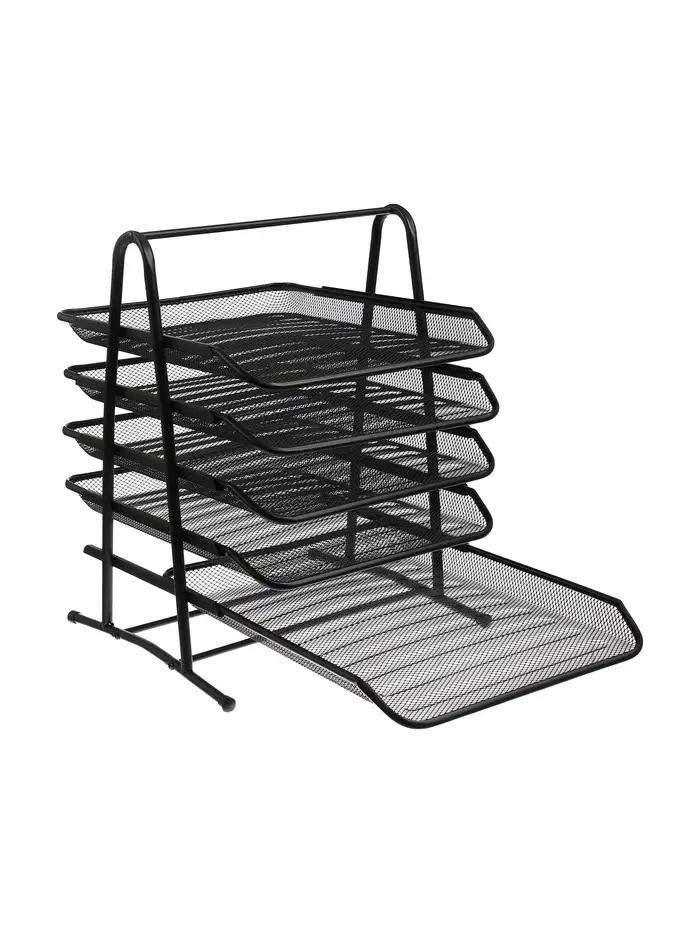 Лоток для бумаг, горизонтальный, металлическая сетка, 5 отделений, чёрный