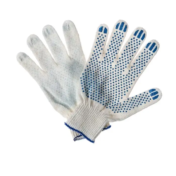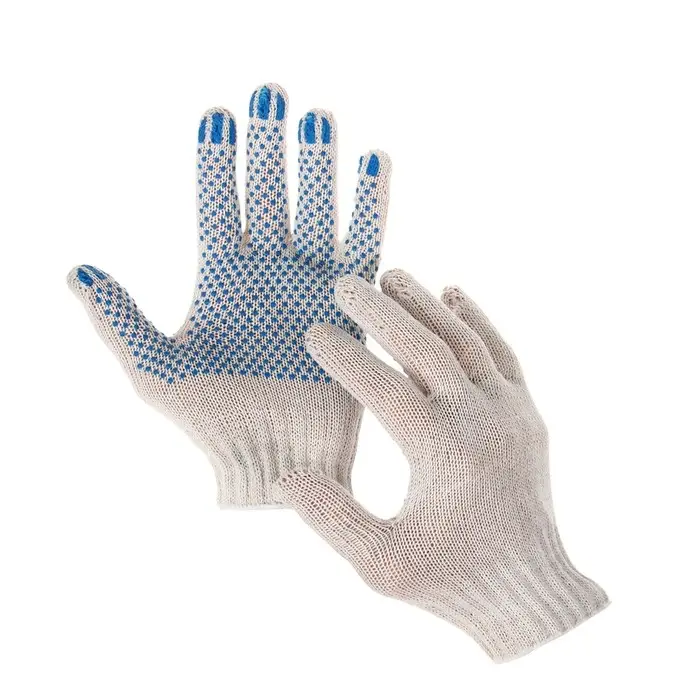 Перчатки, хб, вязка 7 класс, 3 нити, размер 10, с ПВХ точками, белые, Greengo