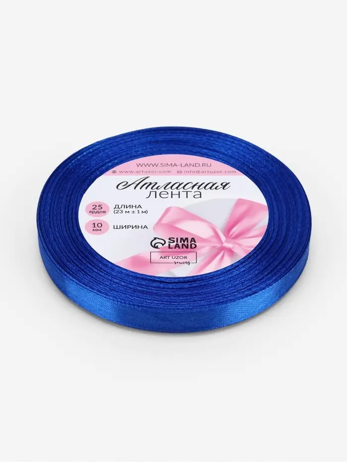 Лента атласная, 10 мм × 23±1 м, синяя №40