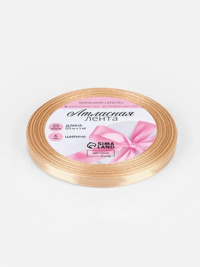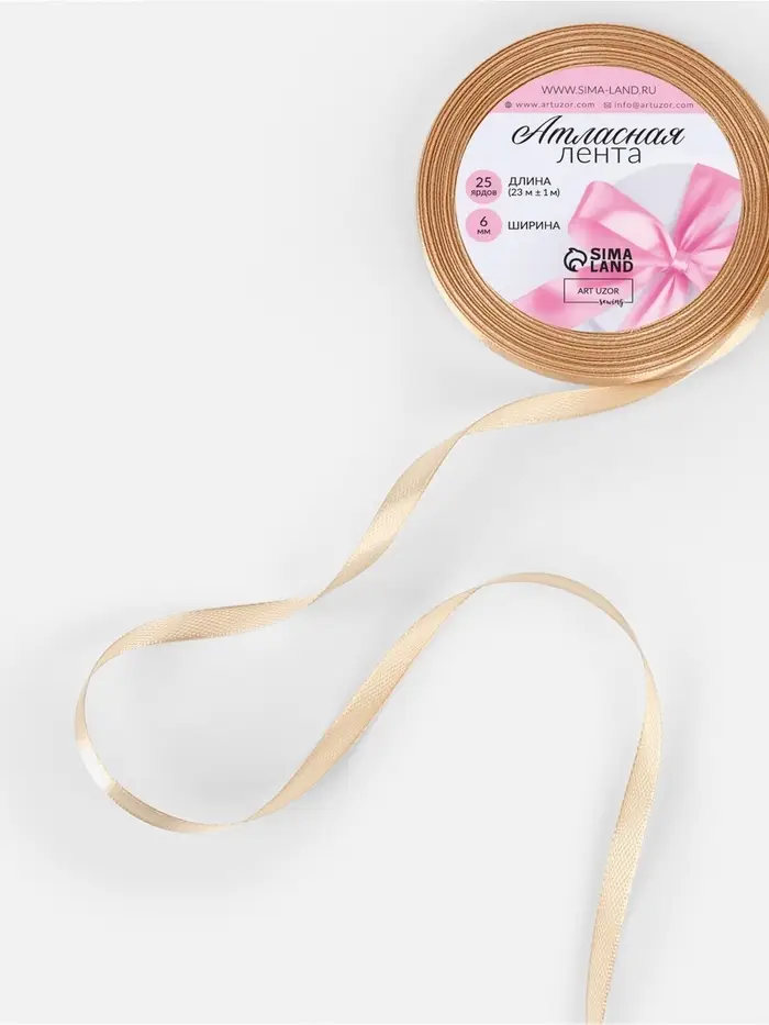 Лента атласная, 6 мм × 23 ± 1 м, цвет бежевый №267