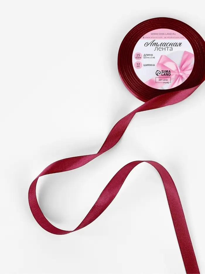Лента атласная, 12 мм, 23±1 м, бордовая №37