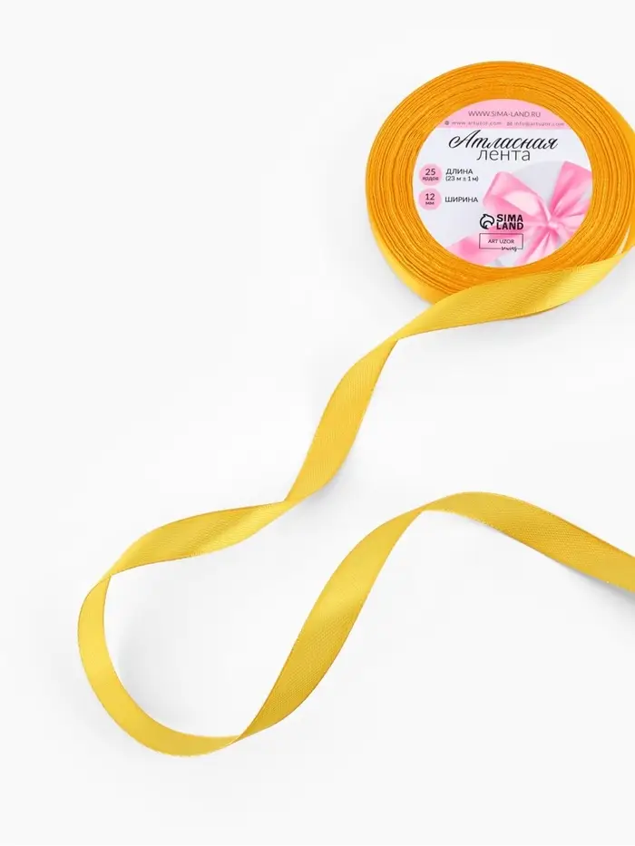 Лента атласная, 12 мм × 23 ± 1 м, цвет солнечный №16