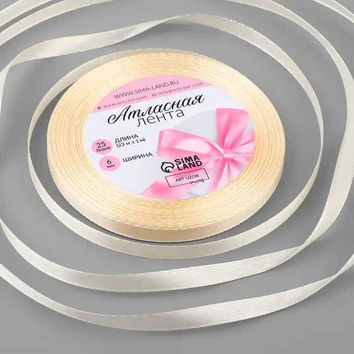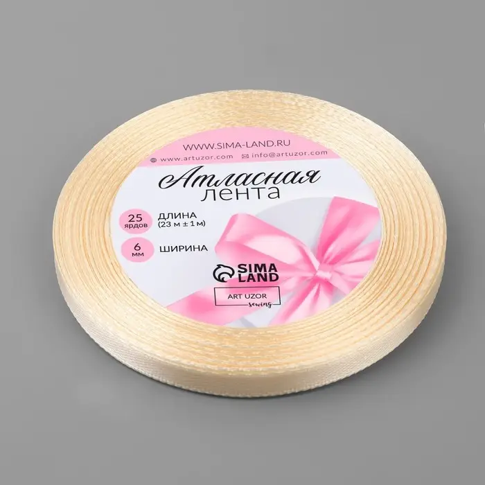Лента атласная, 6 мм × 23 ± 1 м, цвет кремовый №64