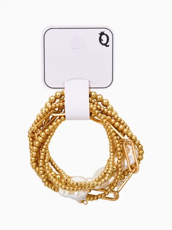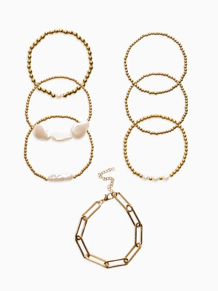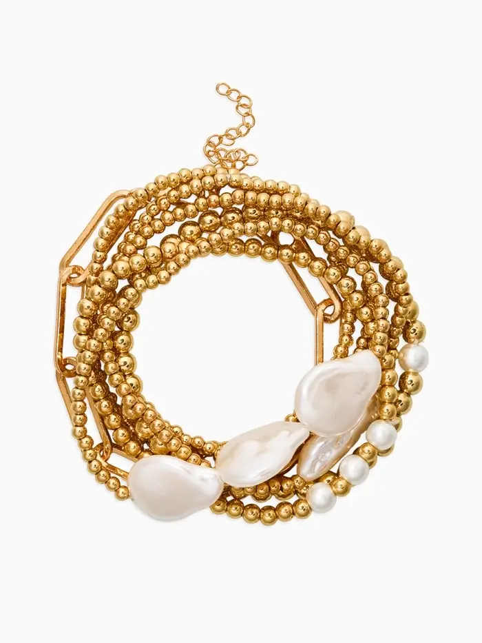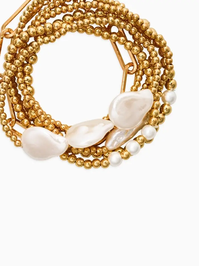 Браслет жемчуг "Барочный с цепями" (набор 7шт) , цвет белый в золоте