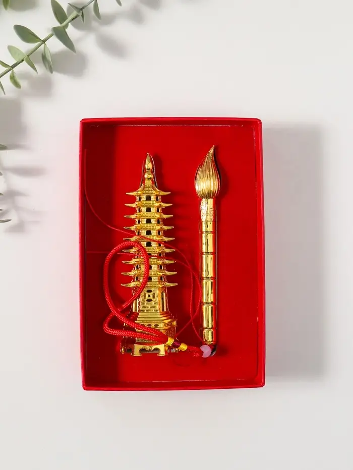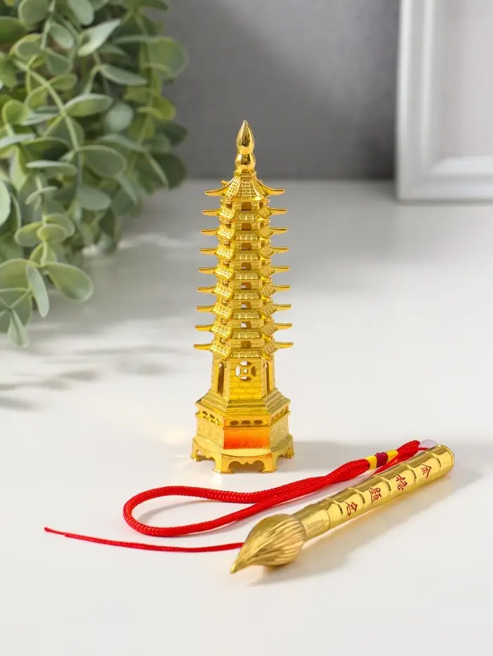 Набор нэцкэ фигурок 2 шт. «Пагода литературы», металл под золото, подарочные