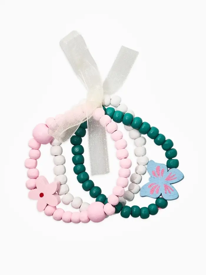 Набор детских браслетов 3шт. «Выбражулька» с бантом, бабочка, d=6 см, розово-зеленый
