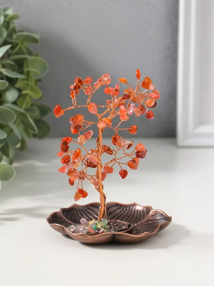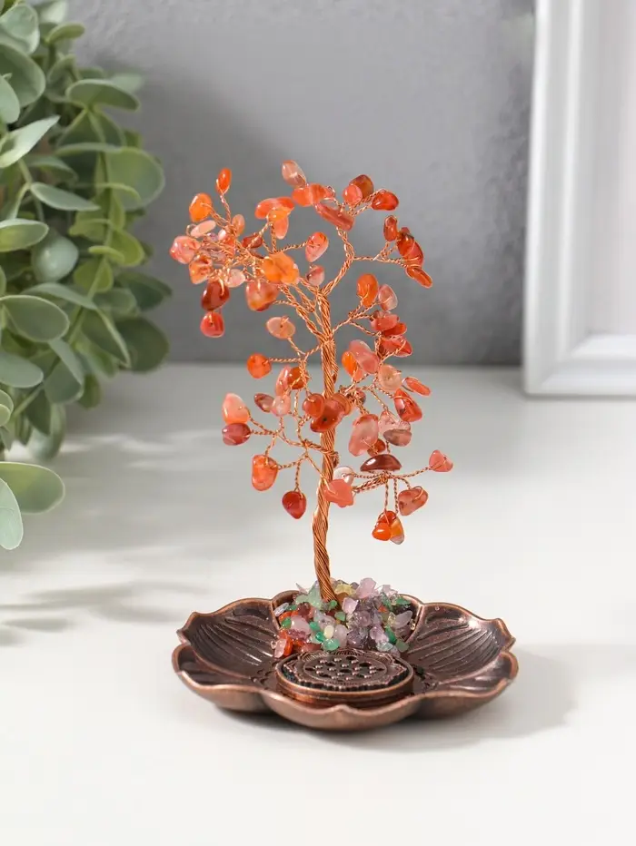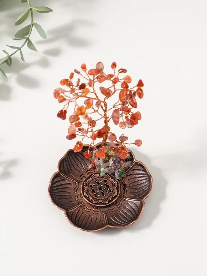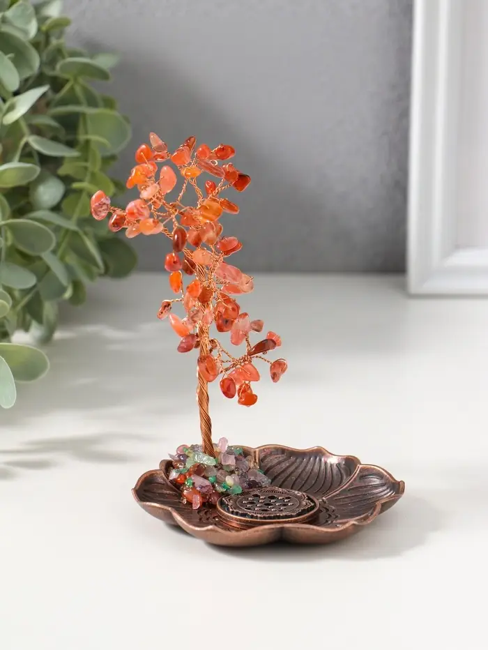 Подставка под благовония "Дерево на цветке" рыжий 72 камня 9х9х13,5 см