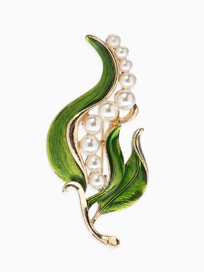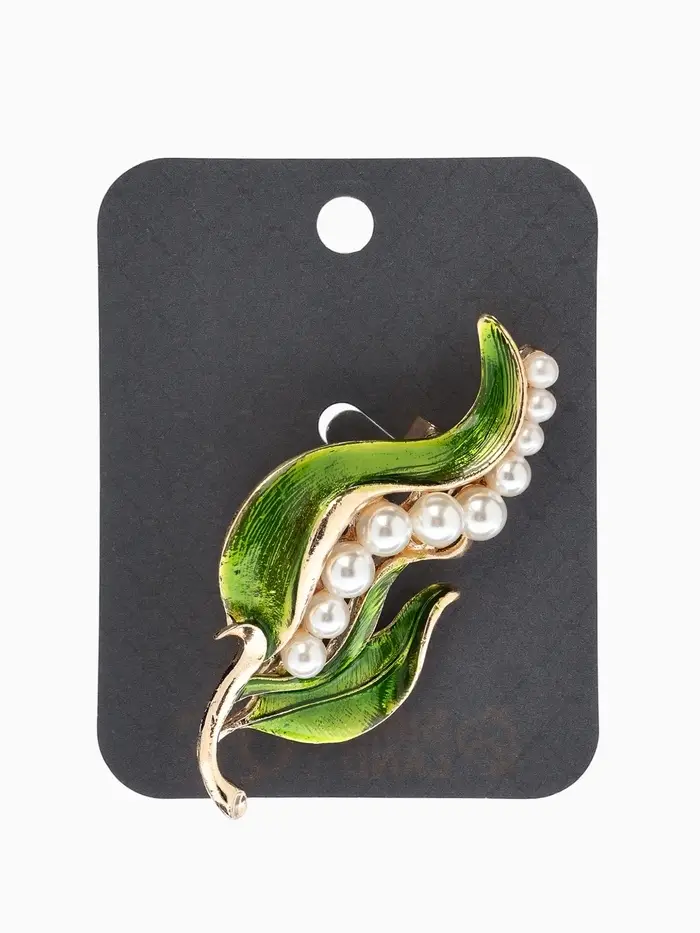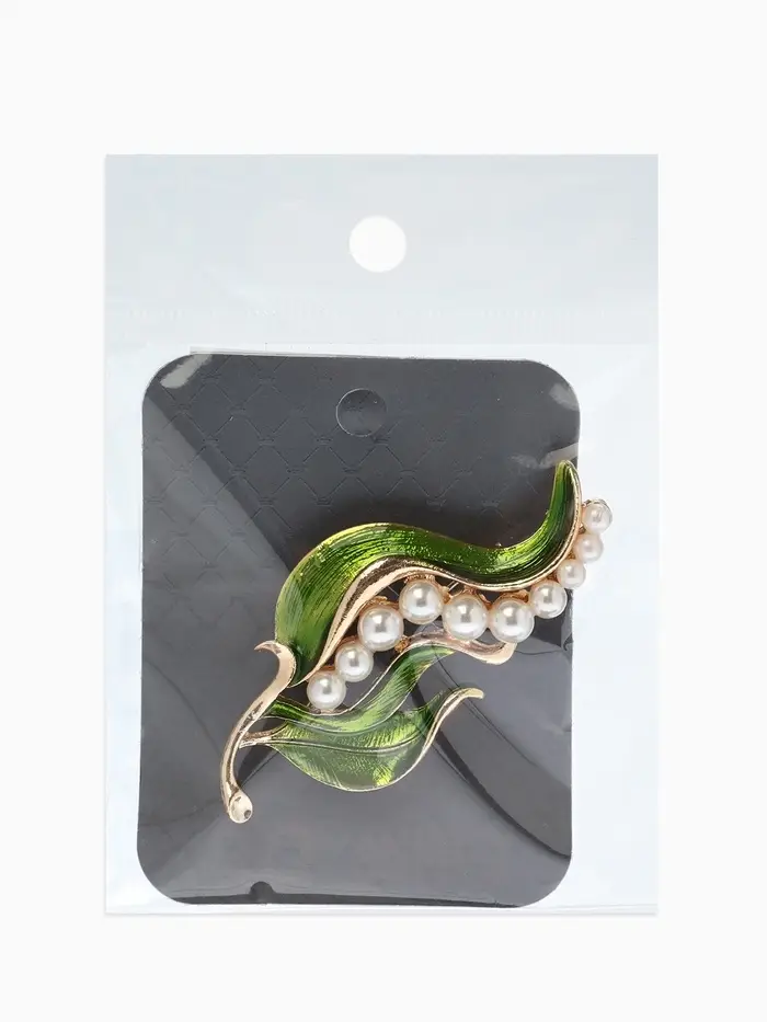 Брошь "Стручок гороха", цвет бело-зелёный в золоте