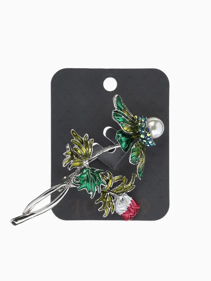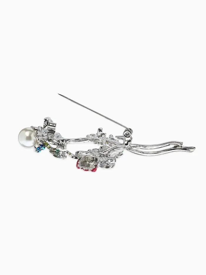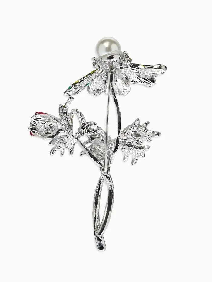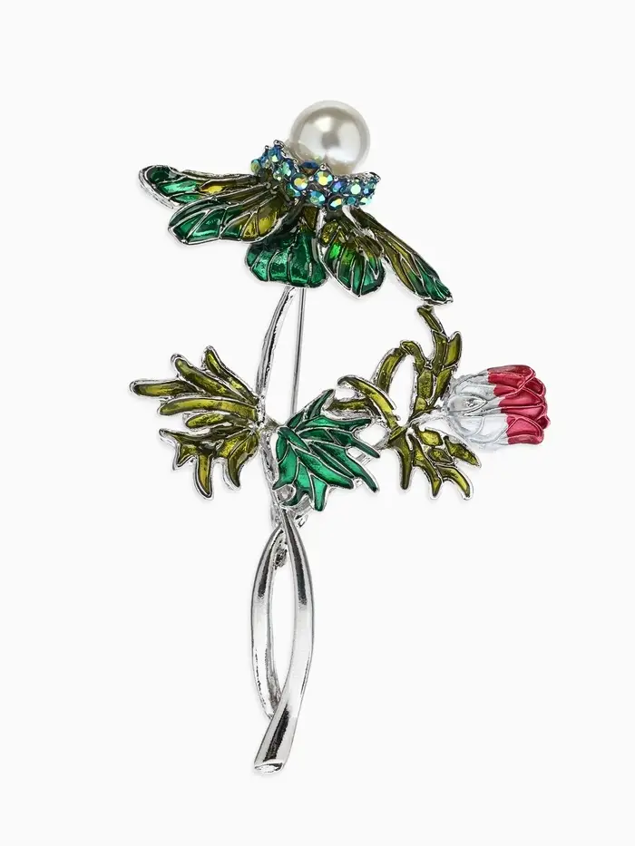Брошь "Репей", цветок с бусиной, цветная в серебре