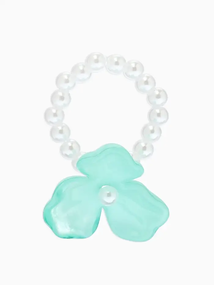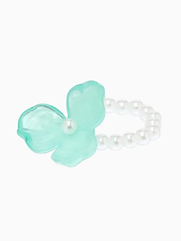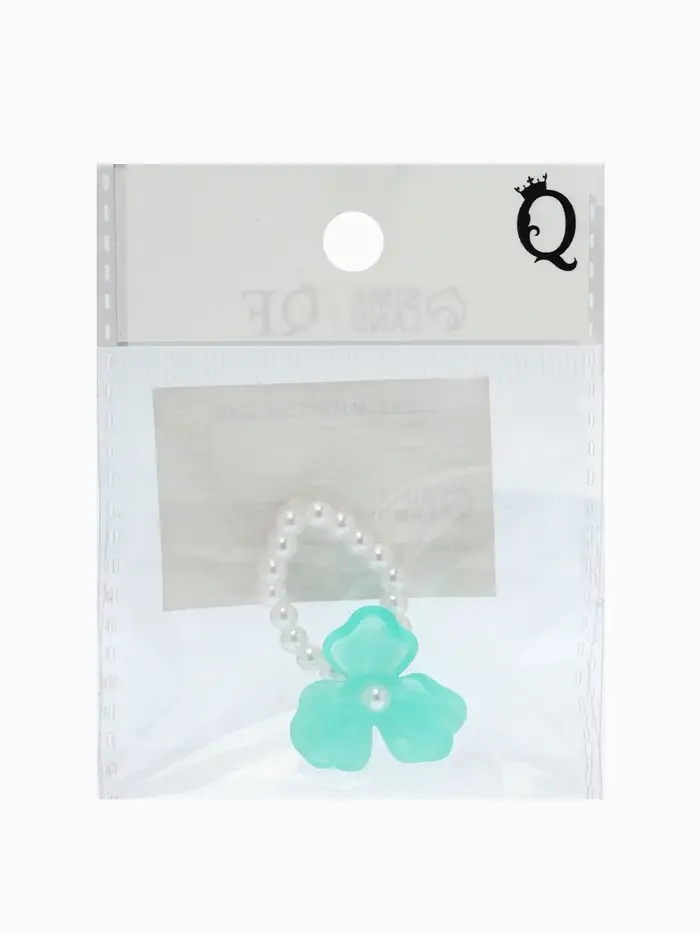 Кольцо "Цветок" трёхлистник жемчужный, цвет небесно-голубой безразмерное на резинке