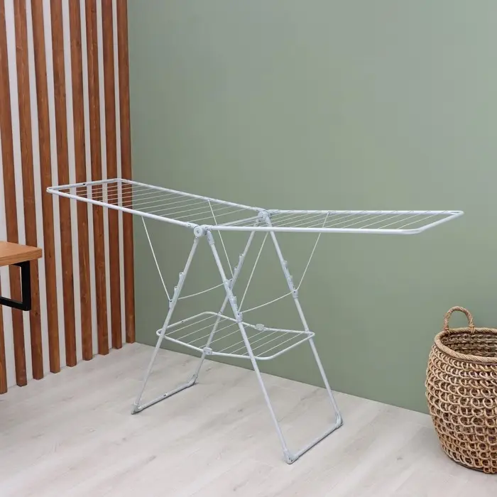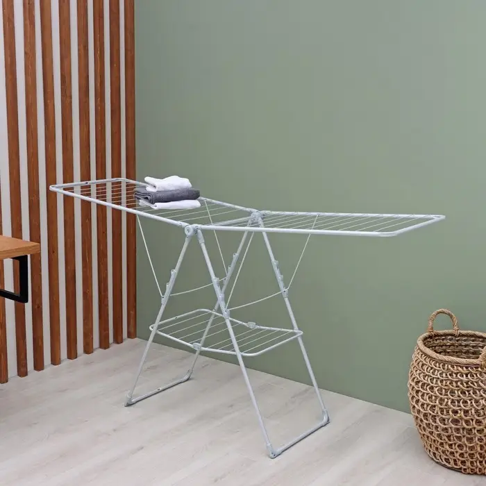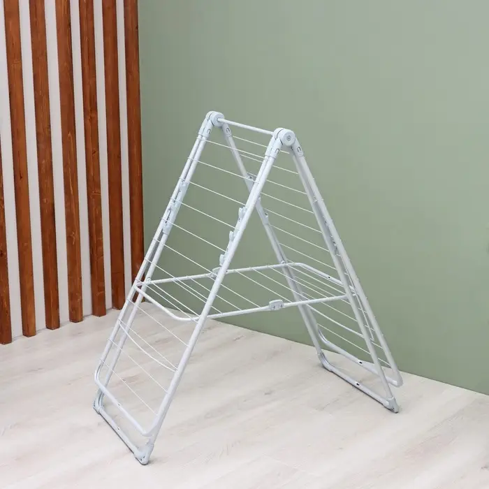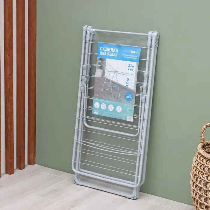 Сушилка для белья напольная складная, рабочая длина 21 м, цвет матовый серый
