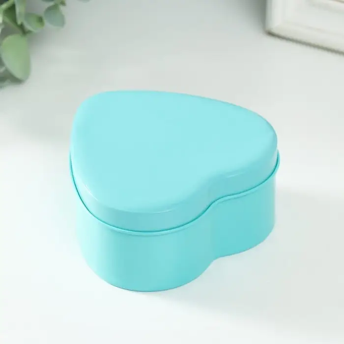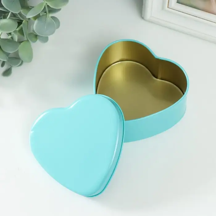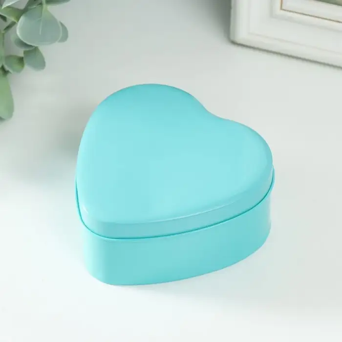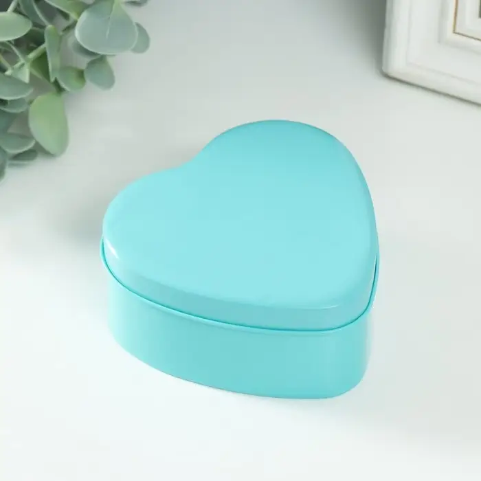 Шкатулка металл под свечу "Сердце. Глянец" голубой 9,5х9х4,5 см