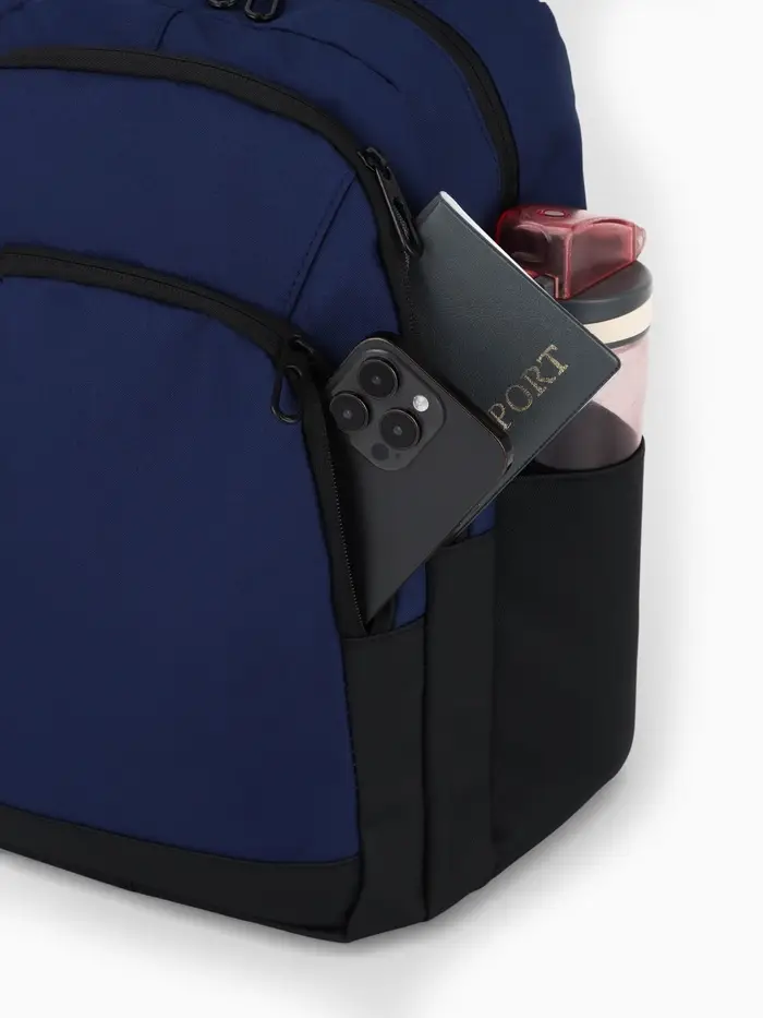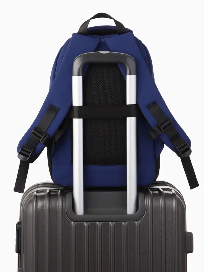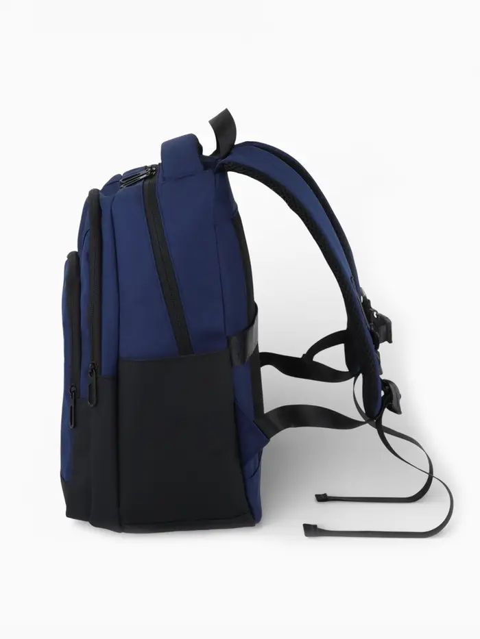 Рюкзак, 27*14*38,5 см, 2 отд 3н/карм, Комби, Водонепрон. дно, синий/черн