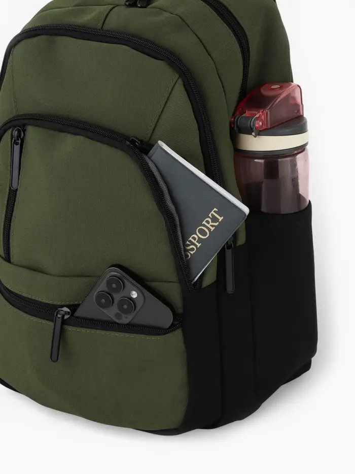 Рюкзак, 26*14*39 см, 2 отд 5н/карм, Комби, Водонепрон. дно, зеленый/черн
