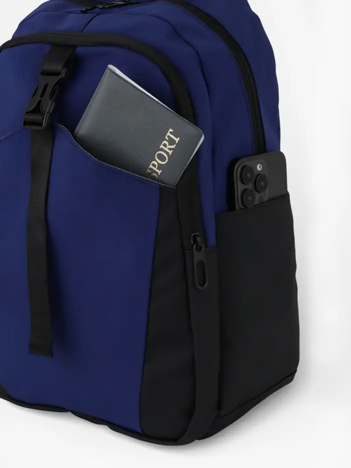 Рюкзак, 27*13*38,5 см, 2 отд 3н/карм, Комби, Водонепрон. дно, синий/черн