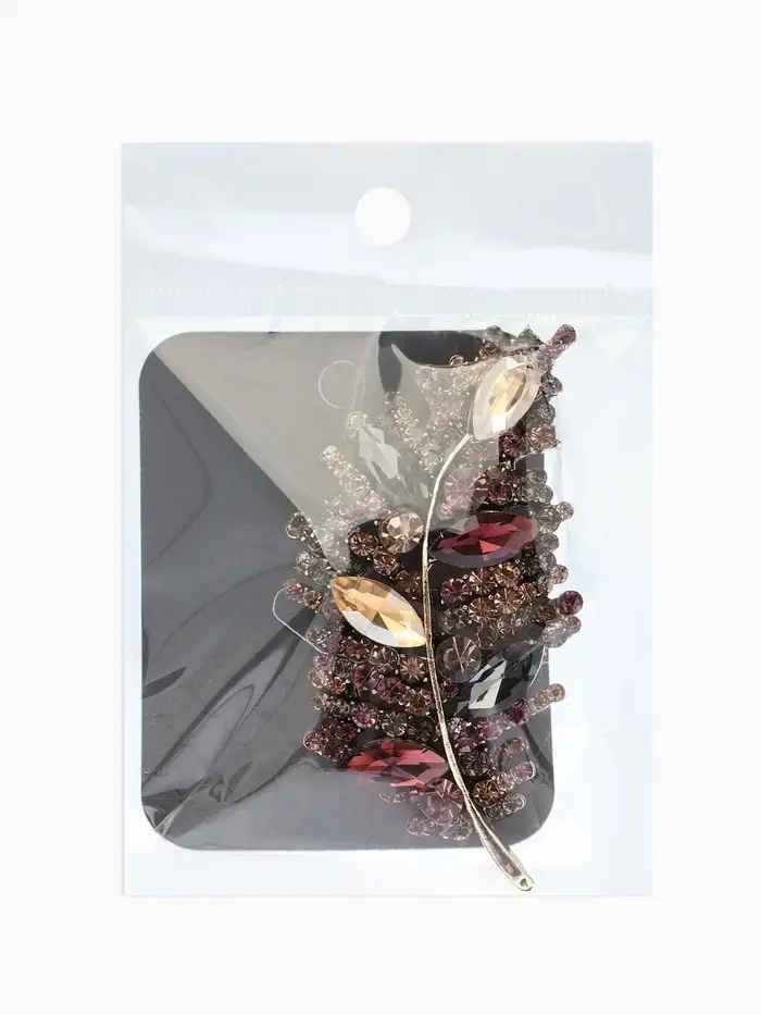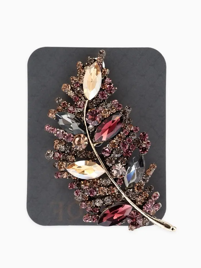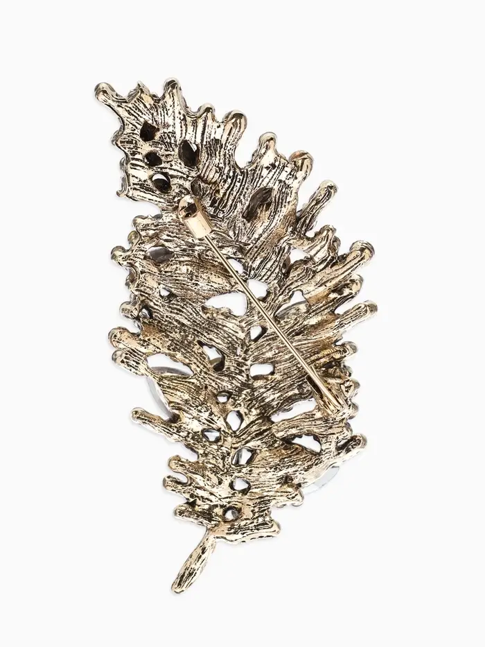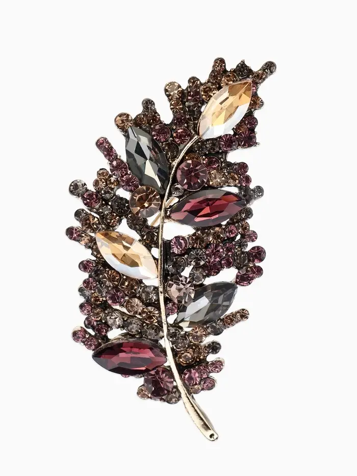Брошь "Императрица" лист, цвет бордово-коричневый в чернёном золоте
