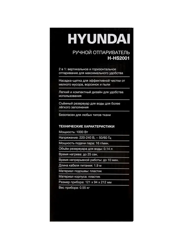 Отпариватель Hyundai H-HS2001, ручной, 1000 Вт, 140 мл, 22 г/мин, сиреневый