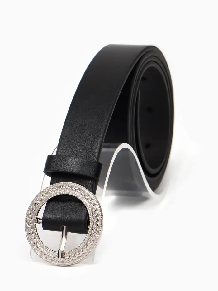 Ремень жен, 06-01-02-01, 3,5*0,3*110 см, без винта, пряжка серебро, 1 прокол, черный