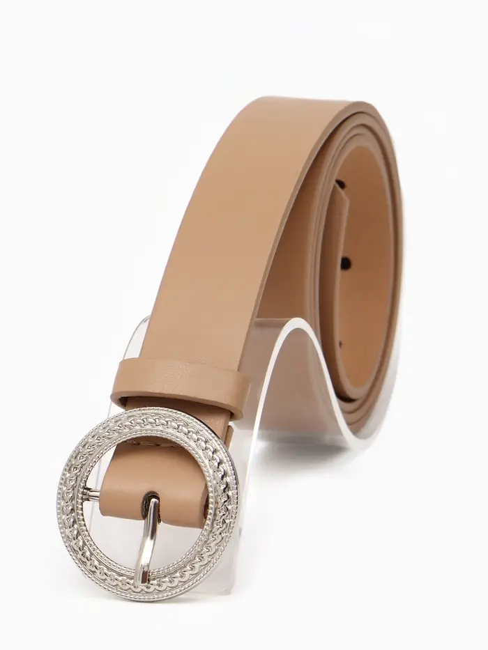 Ремень жен, 06-01-02-01, 3,5*0,3*110 см, без винта, пряжка серебро, 1 прокол, бежевый