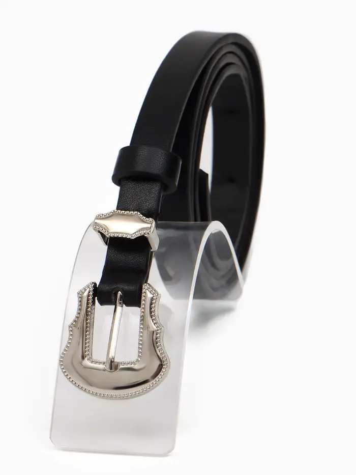 Ремень жен, 02-01-02-01, 1,5*0,3*110 см, без винта, пряжка серебро, 1 прокол, черный