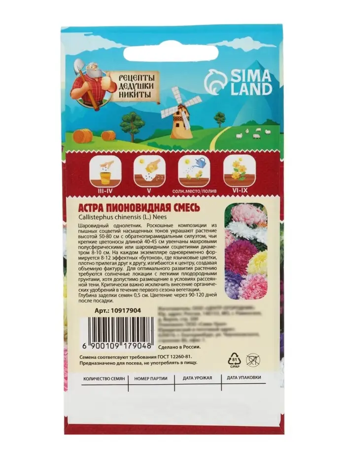 Семена цветов Астра пионовидная, смесь, 0.2 г