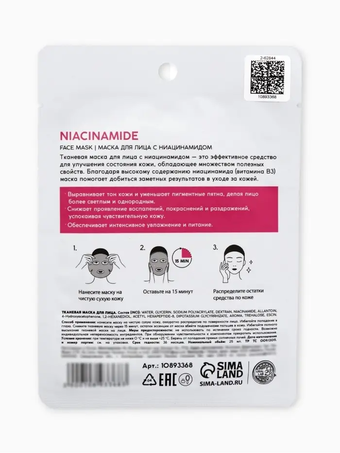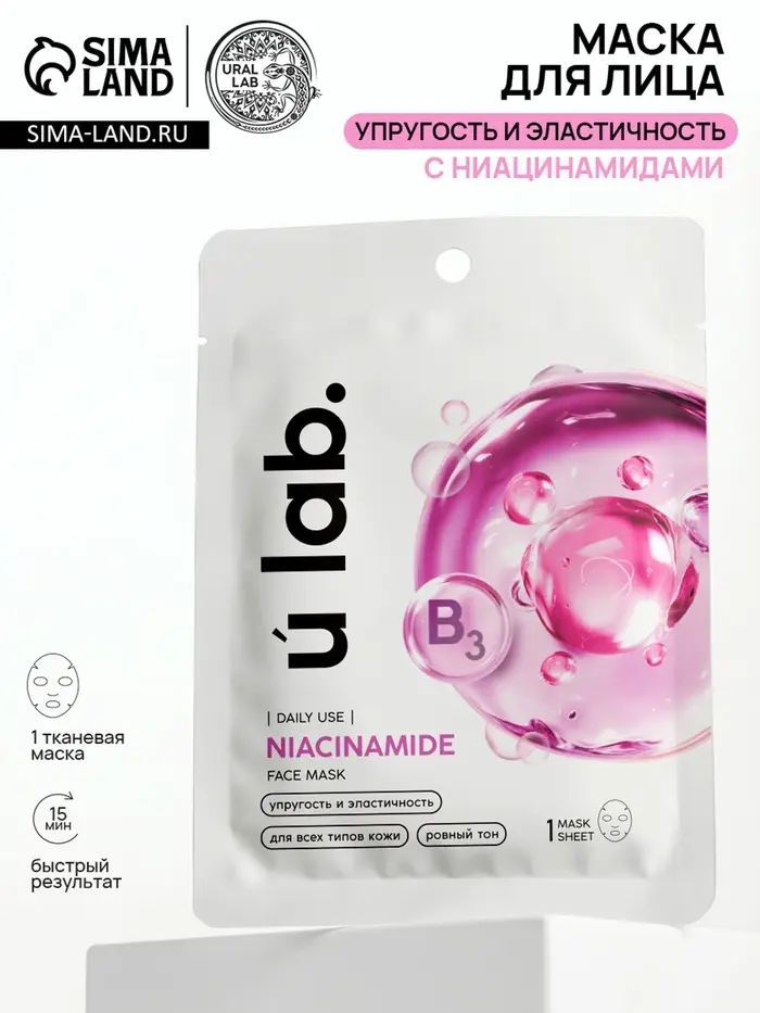 Маска для лица тканевая с ниацинамидом, упругость и эластичность, ULAB
