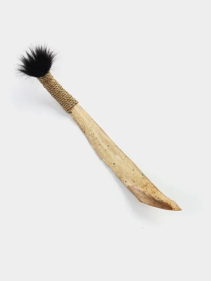 - Клинок из кости: Вместо холодного металла — тёплый, гладкий материал с уникальной природной текстурой. Каждый клинок имеет свой неповторимый рисунок.