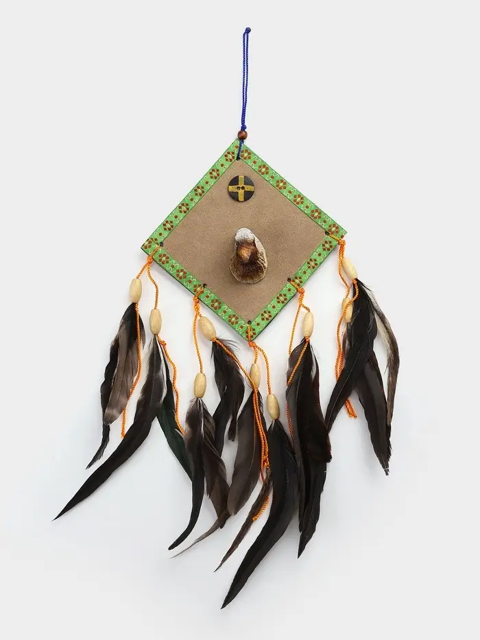 - Перья и текстиль: Сочетание натуральных перьев и мягкого текстиля создаёт интересную игру фактур и наполняет амулет уютом.