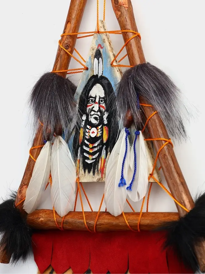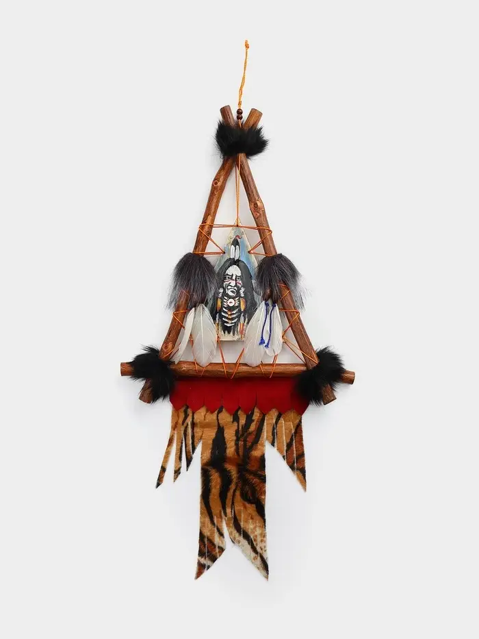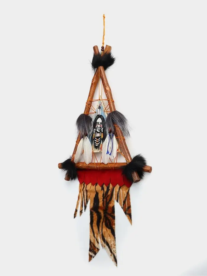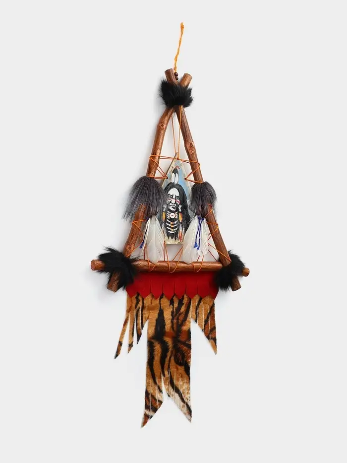 Образ вождя — это собирательный символ мудрости, силы и связи с предками. Текстильное панно треугольной формы размером 30×60 см привносит в интерьер этническую глубину и дух древних культур. Выполненное из ткани, оно передаёт черты лика вождя через фактуру и цвет, становясь вертикальным акцентом, который нельзя не заметить. Мягкий материал делает его уютным и тактильно приятным, а подвесная система позволяет легко закрепить панно на стене.