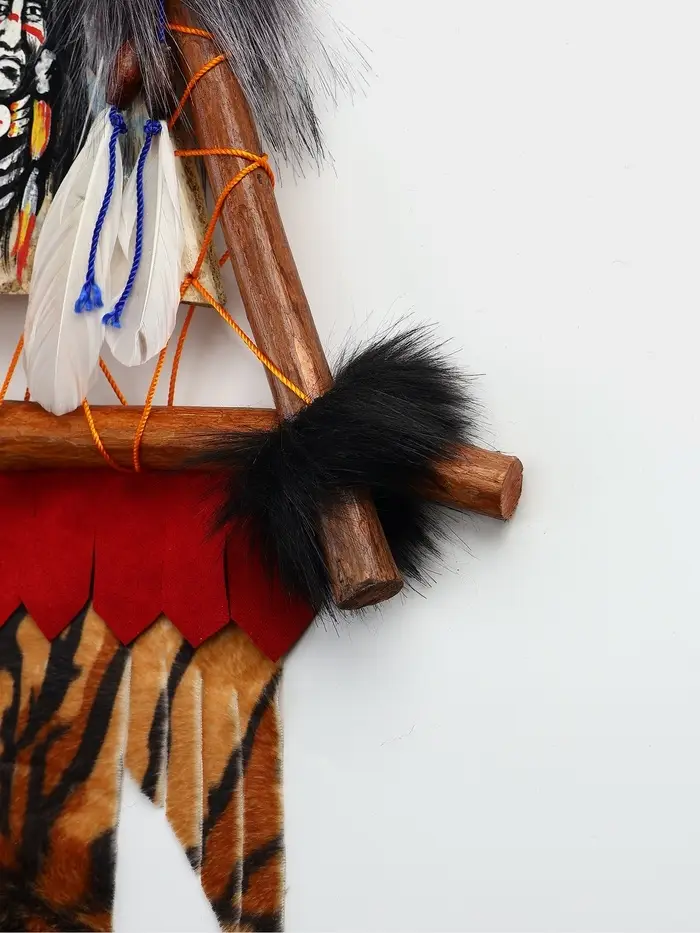 Это панно не просто изображает человека. Оно передаёт архетип — образ того, кто нёс ответственность за свой род, принимал важные решения и хранил традиции. В отличие от деревянных или каменных скульптур, текстиль делает этот образ более мягким, близким, домашним. Кажется, что вождь смотрит на вас сквозь время, напоминая о корнях, силе характера и уважении к прошлому. Ткань приятна на ощупь и создаёт особую атмосферу уюта, которой не хватает более холодным материалам. Такой предмет станет не просто декором, а смысловым центром комнаты, привнося в неё глубину и историю.