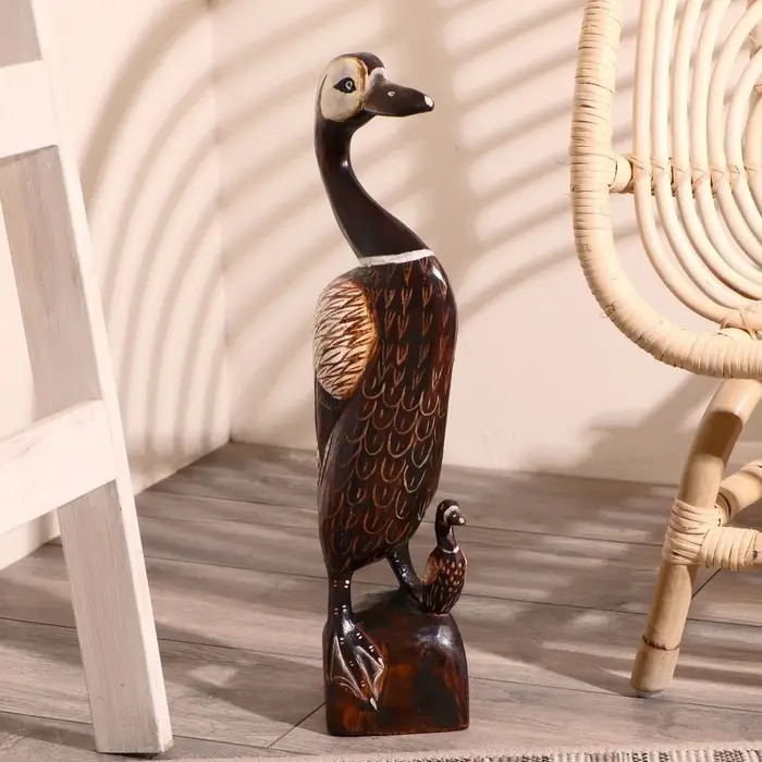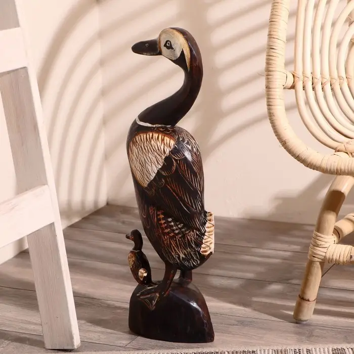 Индонезия – страна богата великим разнообразием птиц, это и пеликаны, и фламинго, и аисты, цапли, утки и, конечно же, попугаи. Птица в этой загадочной стране – это символ успеха, процветания и вдохновения, поэтому пусть сувенир «Утка с утёнком», 52×9×17 см, дерево выполненная из тропической породы дерева вдохновляет Вас и Ваших близких на добрые поступки и радостные эмоции. Дайте волю своим чувствам и поделитесь ими с окружающими!