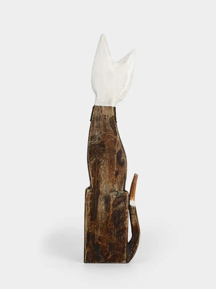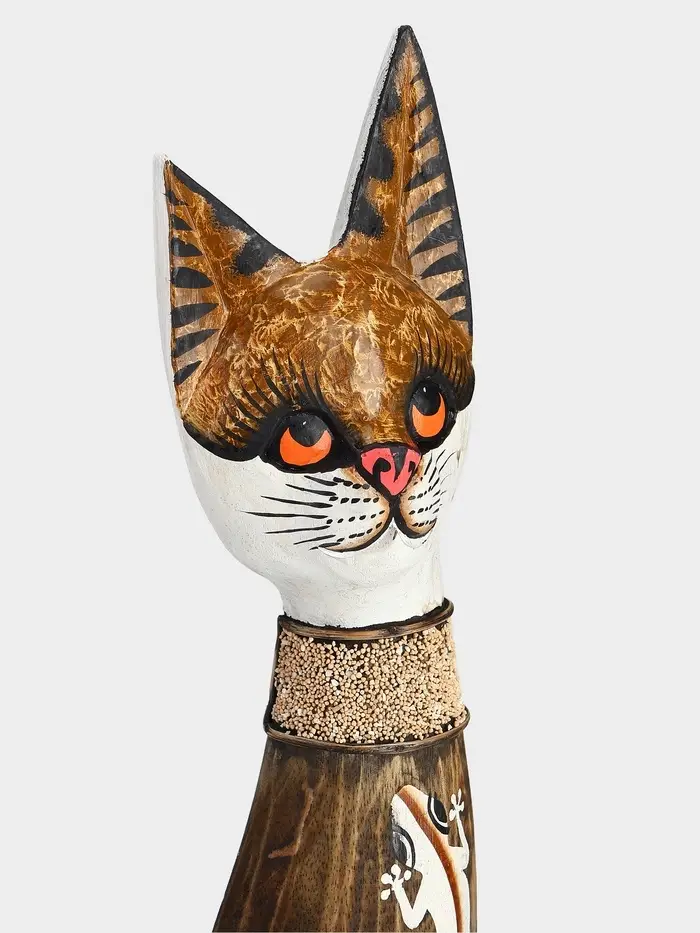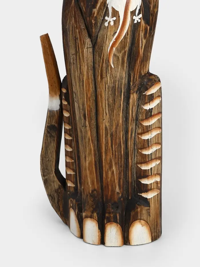 Сувенир дерево "Серая кошка в ошейнике с ящерками" 60х12х6 см