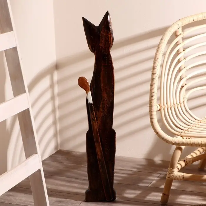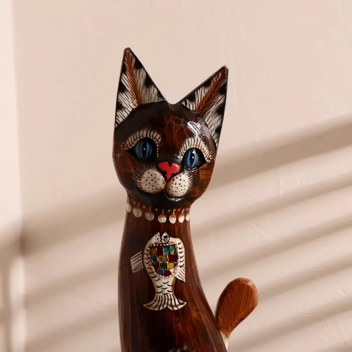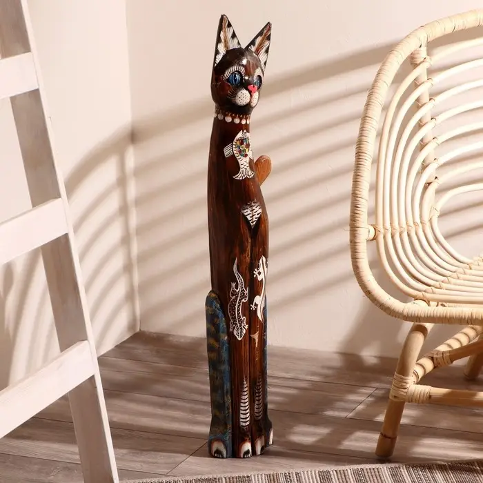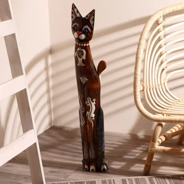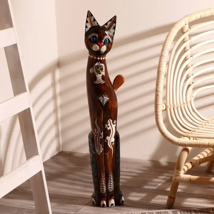Сувенир дерево "Кошка морская с рыбкой и ящерками" 80х13х7 см