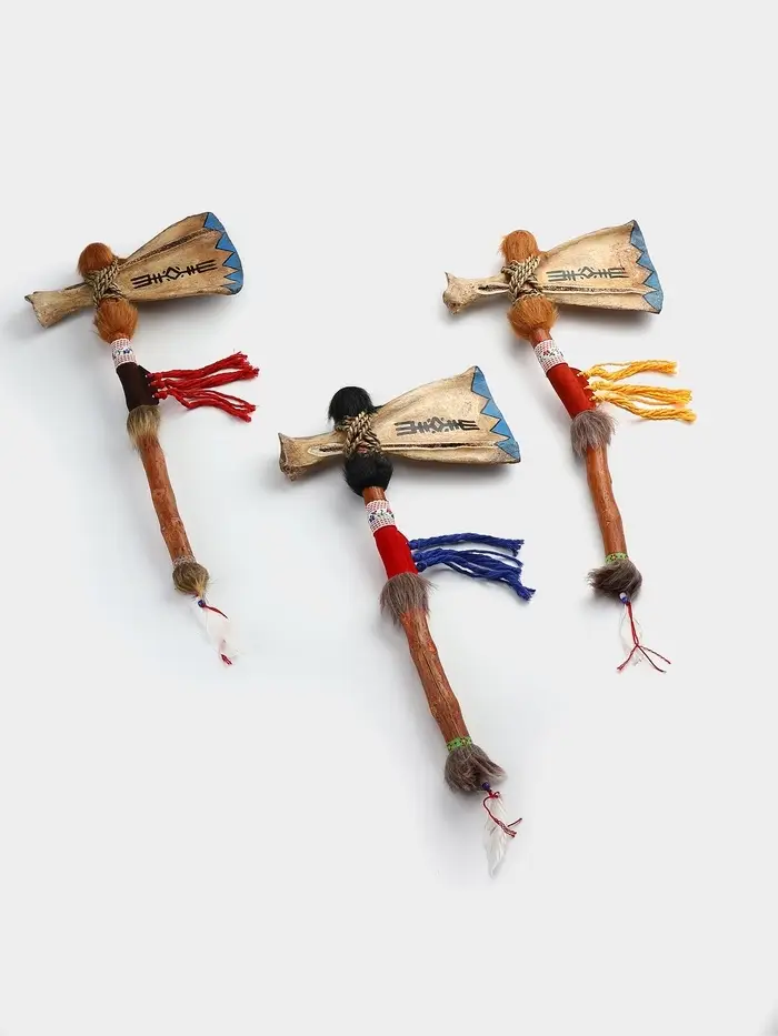 Томагавк подойдёт в качестве презента для мужчин, интересующихся историей, реконструкцией или охотничьей тематикой. Это не просто рядовой сувенир, а предмет с характером. Он может служить опорой для композиции из фотографий, книг и других артефактов, формируя законченный образ в стиле "рустик", "лофт" или "кантри".