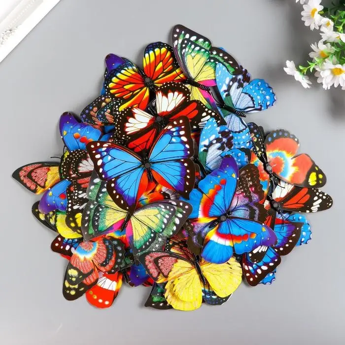 Бабочки картон "Цветочки. Ситец" набор 12 шт h=4-10 см на магните