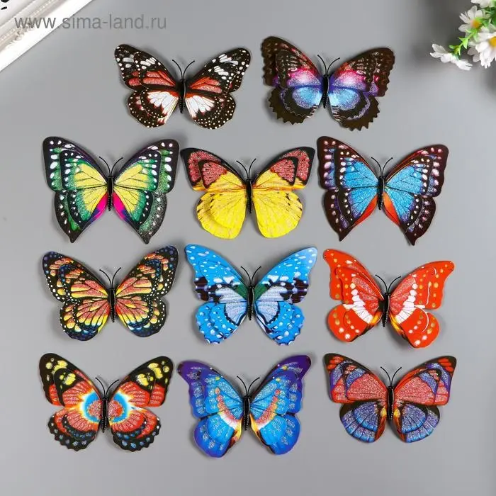 Магнит пластик "Бабочки. Флаг" набор 12 шт МИКС 10 см