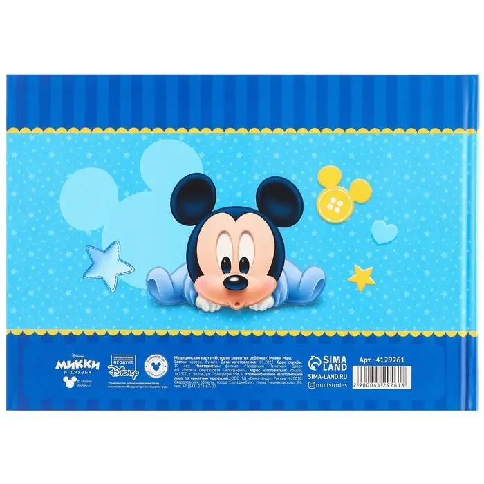 Медицинская карта «История развития ребёнка», Микки Маус, 40 листов