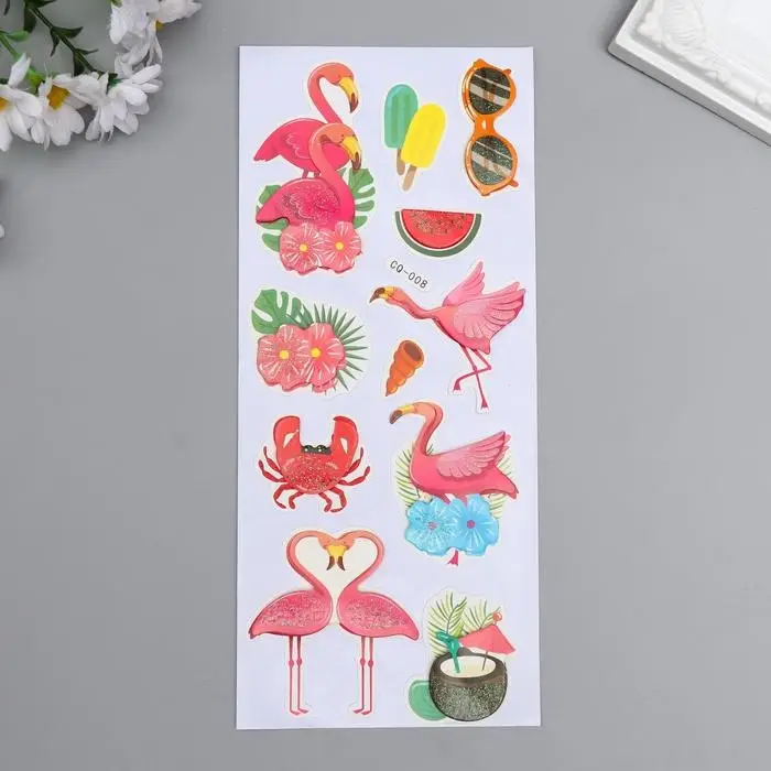 Наклейка бумага "Фламинго и тропики" 28,5х10,5 см