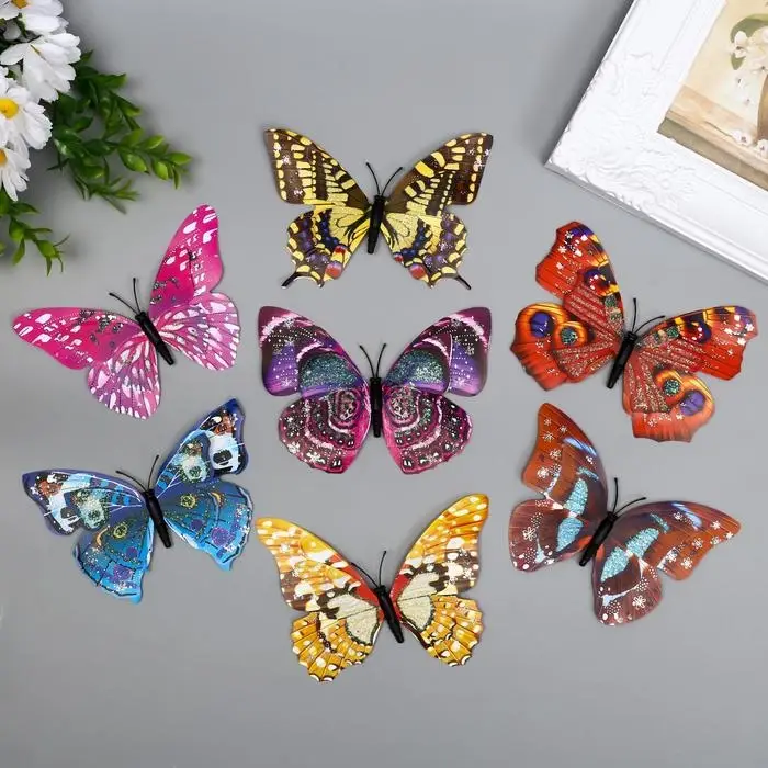 Магнит пластик "Бабочки двойные крылья" голография МИКС 8х12 см