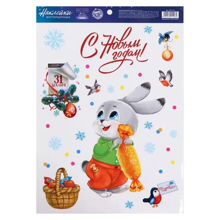 Наклейки интерьерные новогодние «Новогодний зайчик», 21 х 29.5 см