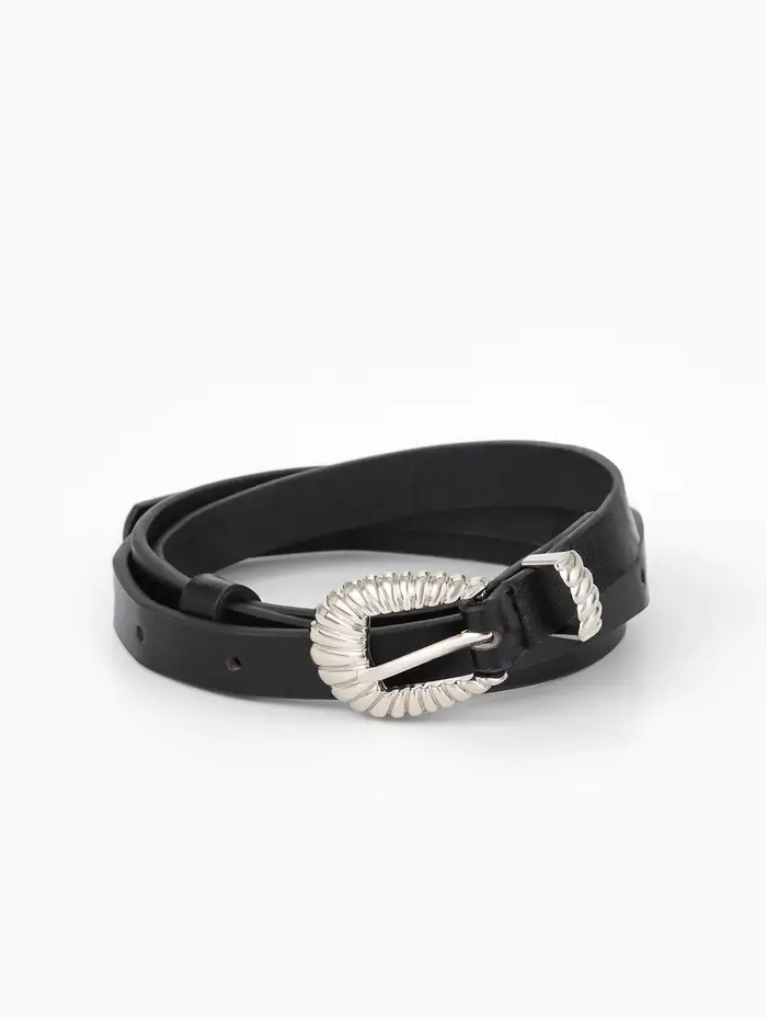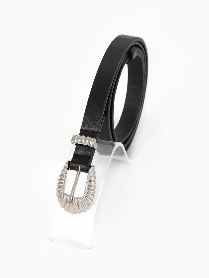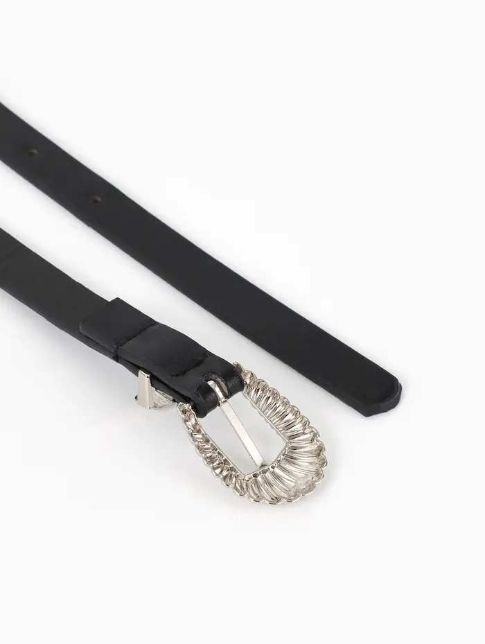Ремень жен, 02-01-02-01, 1,5*0,3*110 см, без винта, пряжка серебро, 1 прокол, черный